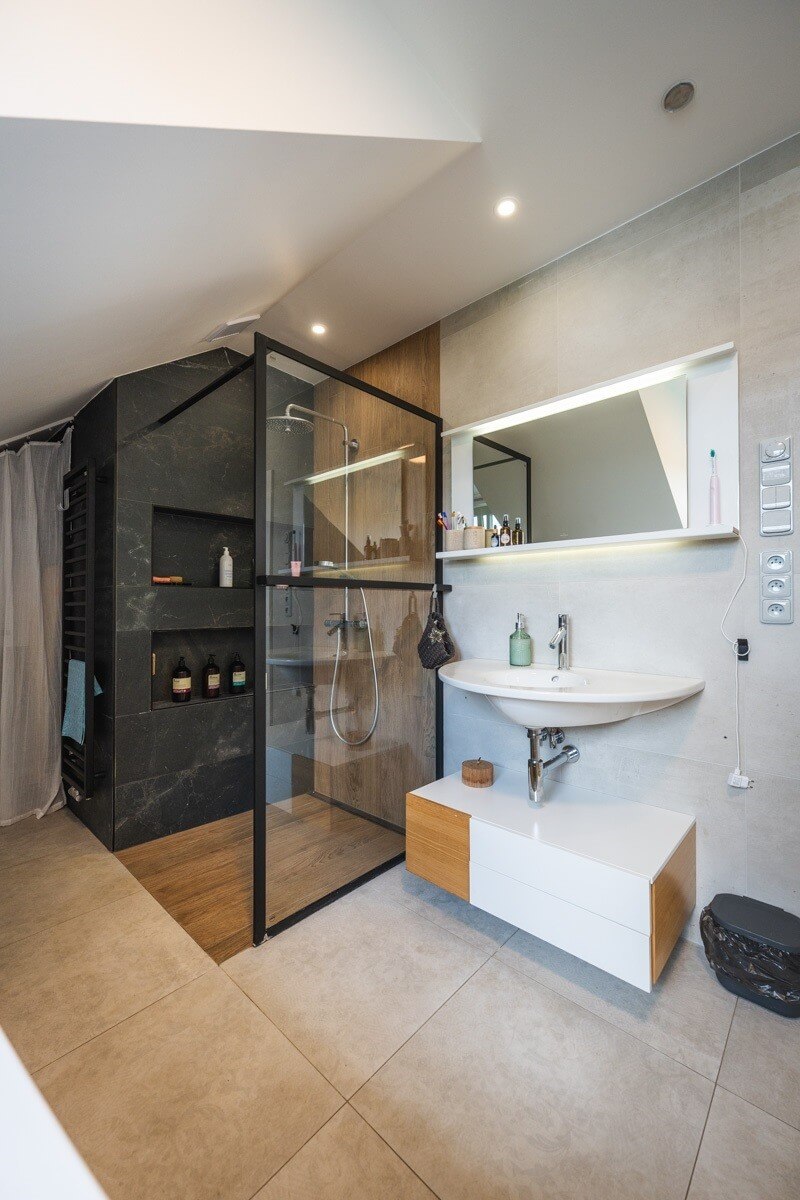 Bylo toho opravdu hodně. Některé práce jsme zvládli sami, jiné s pomocí známých řemeslníků, které jsem znal ze své dřívější práce ve firmě na koupelny. Sami jsme si například lili podlahy, pokládali polystyren, stavěli komín a dělali řadu dalších úprav. Dost nám pomáhal i můj otec, který měl zednickou živnost.